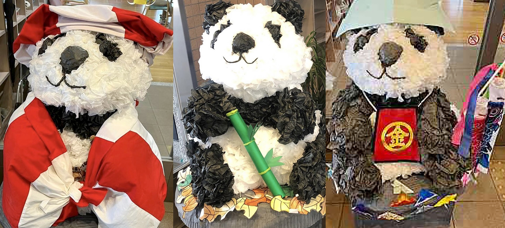 扇揚苑デイサービスセンターを象徴するキャラクターとして何か作りたいと考える中で、白と黒のカラーリングから誰が見ても「パンダ」と分かり、愛嬌のある姿は、ご利用される皆様にも気に入っていただけるとの思いで作りました。